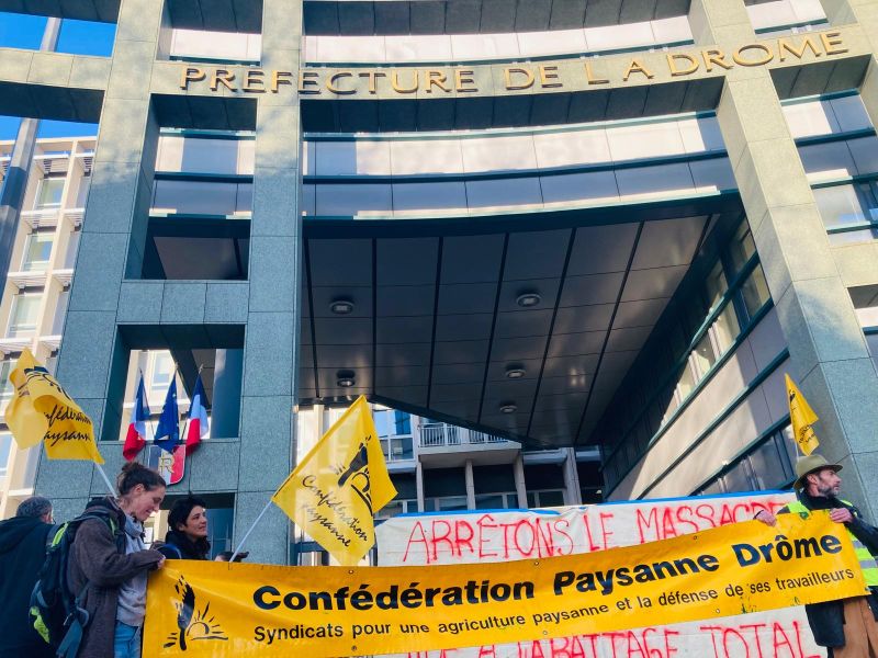 La Confédération paysanne de la Drôme appelle à un large rassemblement ce mercredi 17 décembre à Valence. Nous dénonçons une politique sanitaire inhumaine dictée par la course au commerce ...