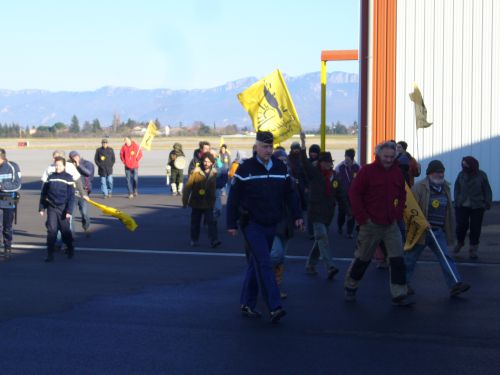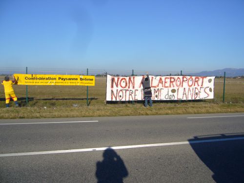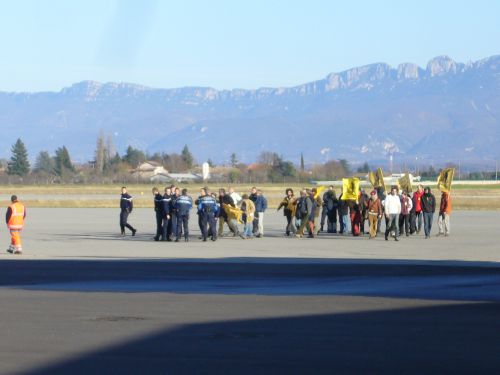 Nous avons entravé l'aviation locale, car elle symbolise l'industrie aéronautique qui s'installe sur les terres des paysans. Les paysans se sont donc introduits sur les terres de l'aérodrome et les forces de gendarmerie ont interrompu la manifestation au bout de trois quarts d'heure environ.