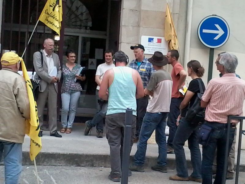 La DDT a écouté les représentants de la Confédération paysanne avec attention, a pris acte de leurs revendications et s'est engagée à les faire remonter au Préfet, qui les transmettra au Ministère de l'agriculture.